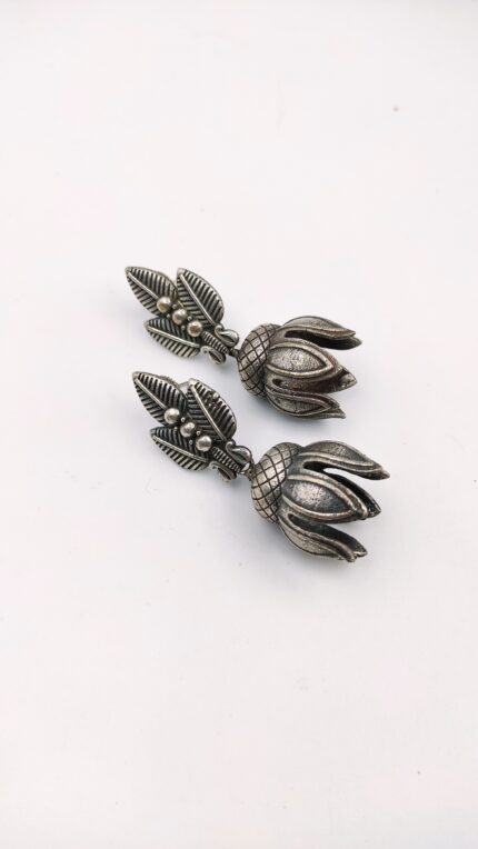 silver look alike lotus jhumka