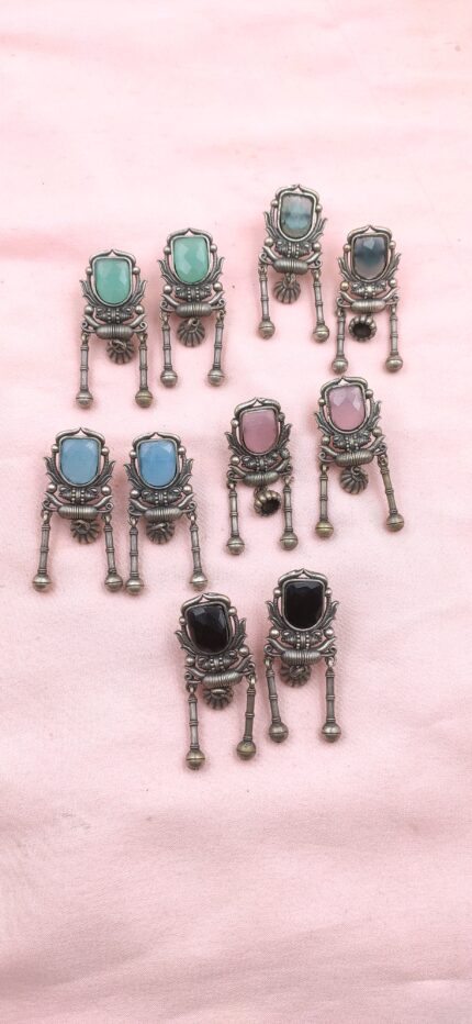 Elevate your style with these beautiful oxidised silver look-alike earrings, a true testament to premium craftsmanship and artistic design. Meticulously created from high-quality brass, these earrings are given a rich oxidised finish, lending them a timeless, antique appeal that beautifully mimics the look of vintage silver jewellery.