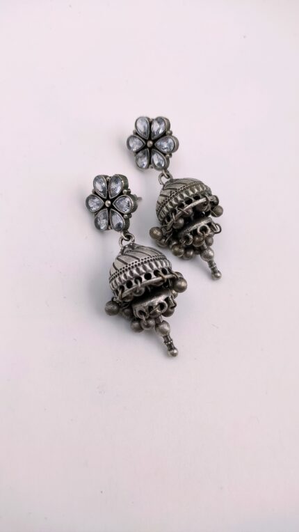 silver look alike flower jhumka
